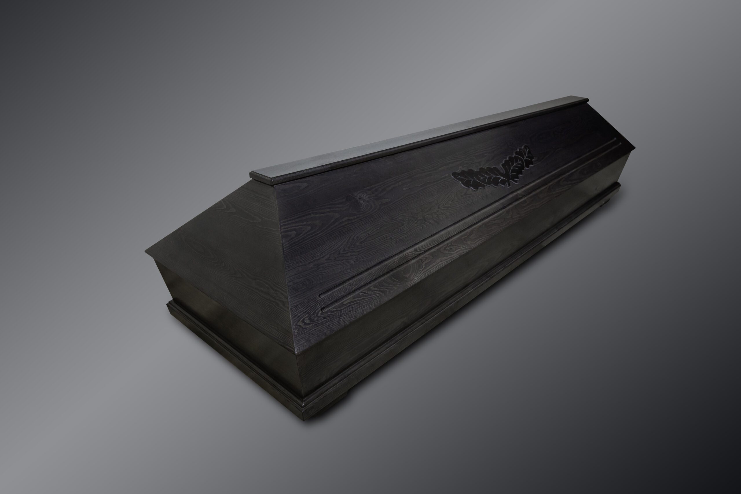 Klasisks priedes koka zārks ar ozola lapiņām